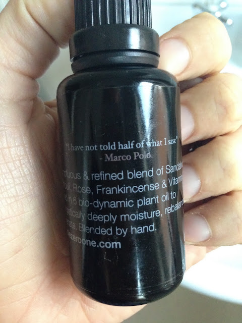 Beautifully packaged in a sleek and elegant black bottle stopper (I love the quotation from Marco Polo which embosses each bottle) the elixir helps to counteract the effect which environmental damage has on the skin. Using a blend of three precious and essential oils - Sandalwood, Frankincense and Myrhh - this serum-like potion locks in moisture and quenches thirsty, parched skin.